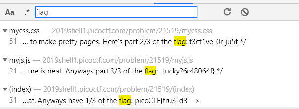查看网页源码,flag分成三部分在注释中,全局搜索flag即可。