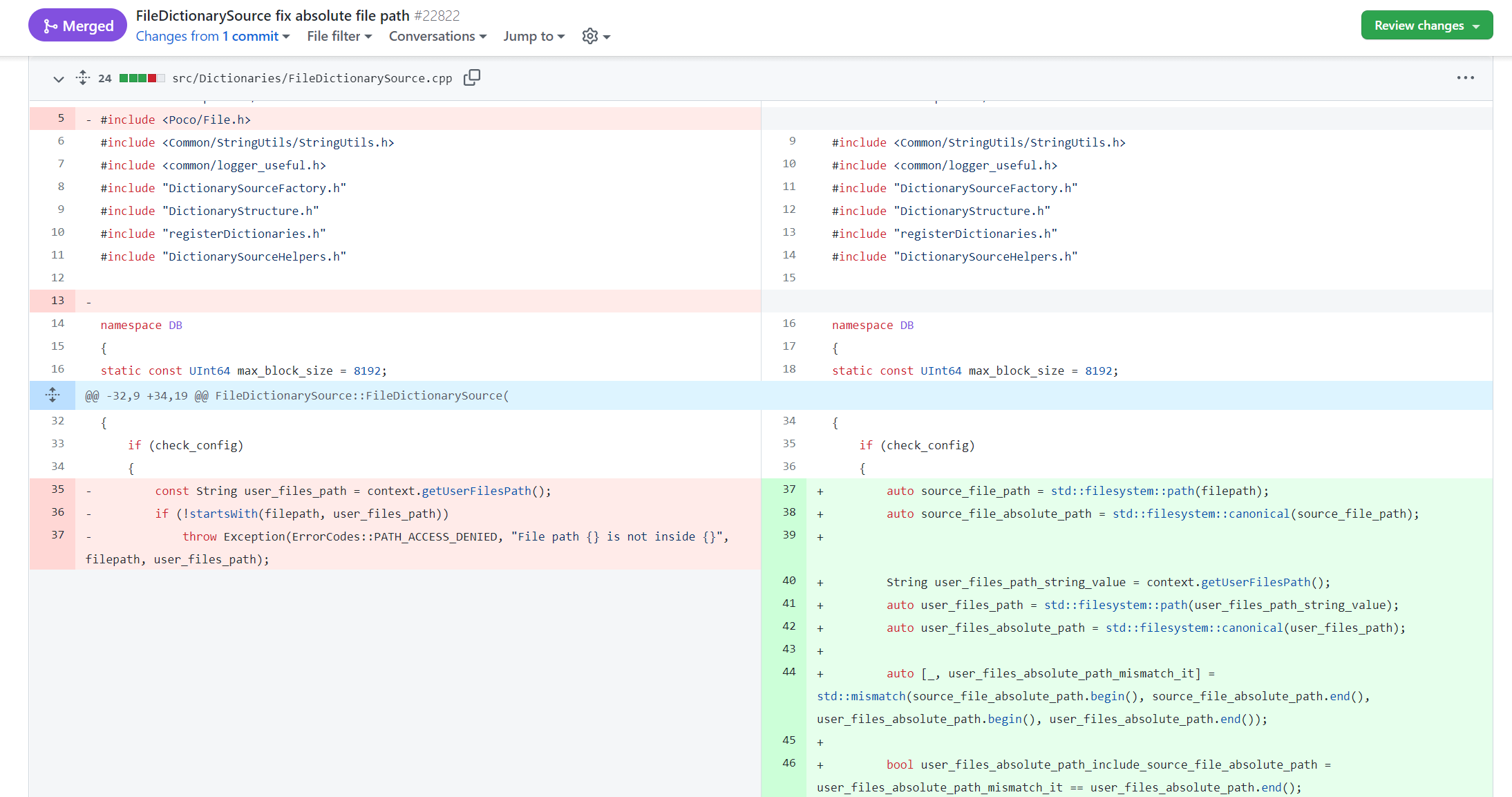 在GitHub官方仓库里,找到了对应的PR FileDictionarySource fix absolute file path #22822